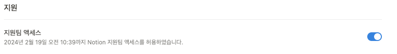 순서대로 들어가서 지원팀 엑세스를 허용합니다. 그러면 노션 지원팀에서 나의 계정을 확인 할 수 있어요.