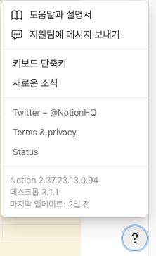 2.노션 프로그램에서 ? 로 지원팀에 메세지 바로 보내기