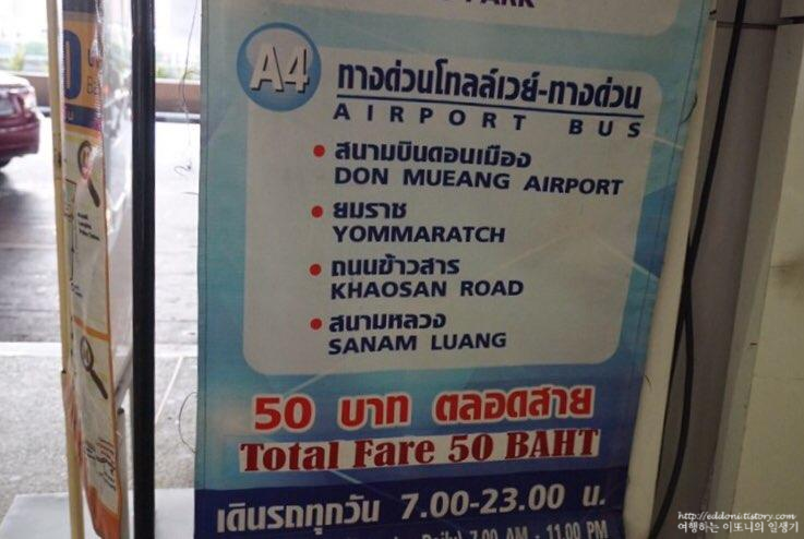 A1~A4 버스, 카오산로드로 가야하니깐 A4버스를 기다립니다!