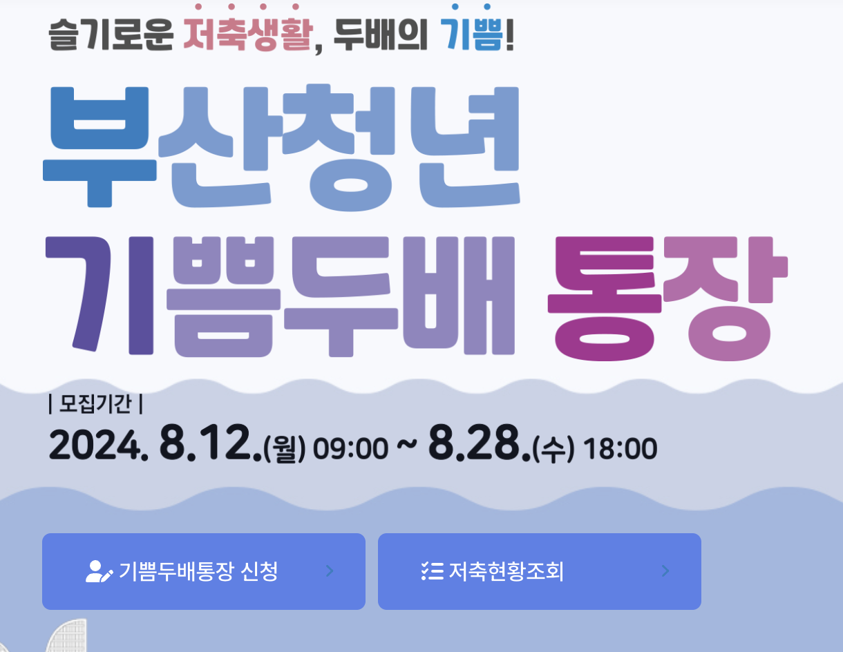 부산광역시에서 2022년부터 진행하고 있는 사업인 부산 청년 기쁨두배통장에 대해 알아보려고 합니다.여러분! 부산청년기쁨두배통장 신청방법과 조건을 꼼꼼하게 알아보자구요24년 8월 12일부터