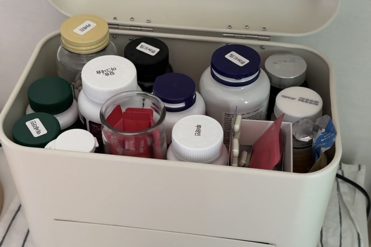 영양제나 생활 소품은 크기가 제각각이라한 공간에 정리하기 어렵습니다.