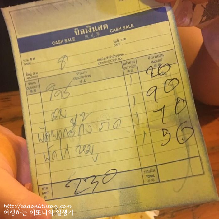 배부르게 먹지도 않았는데 500바트나 주고 먹었다는 사실이죠.