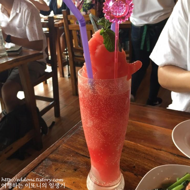 그리고 워터멜론스무디! 두명이서 한잔만 시켜도 될 정도로 사이즈가 커요
