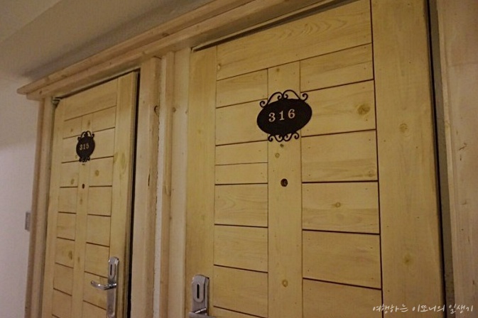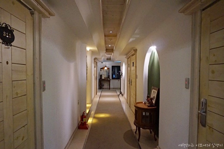 엘레베이터를 타고 5층으로 올라가서, 계단으로 내려갔습니다. 우드느낌의 숙소였어요. 깔끔한 공간입니다.