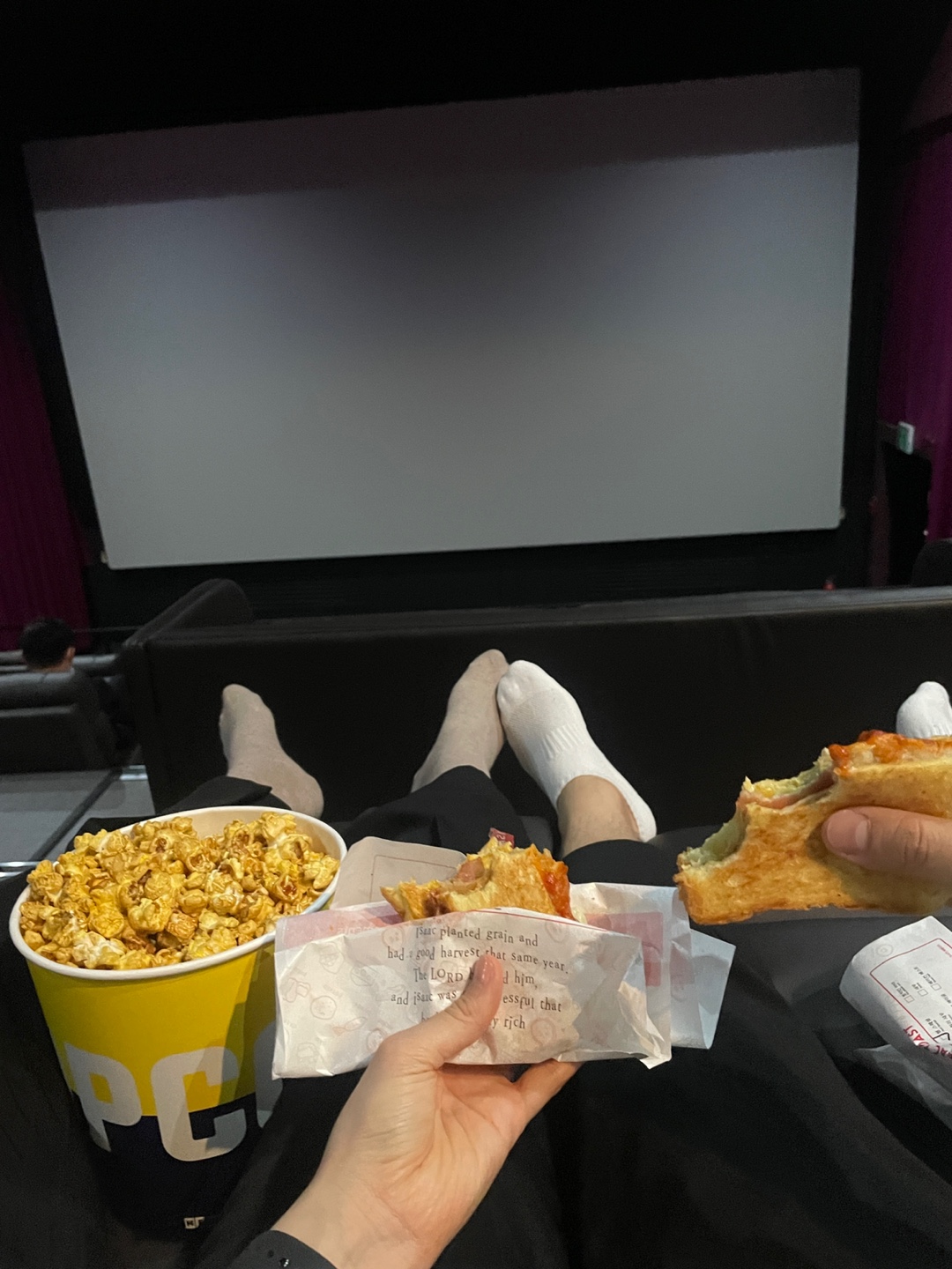 저는 부산 리클라이너 영화관 커플석에 앉았습니다.