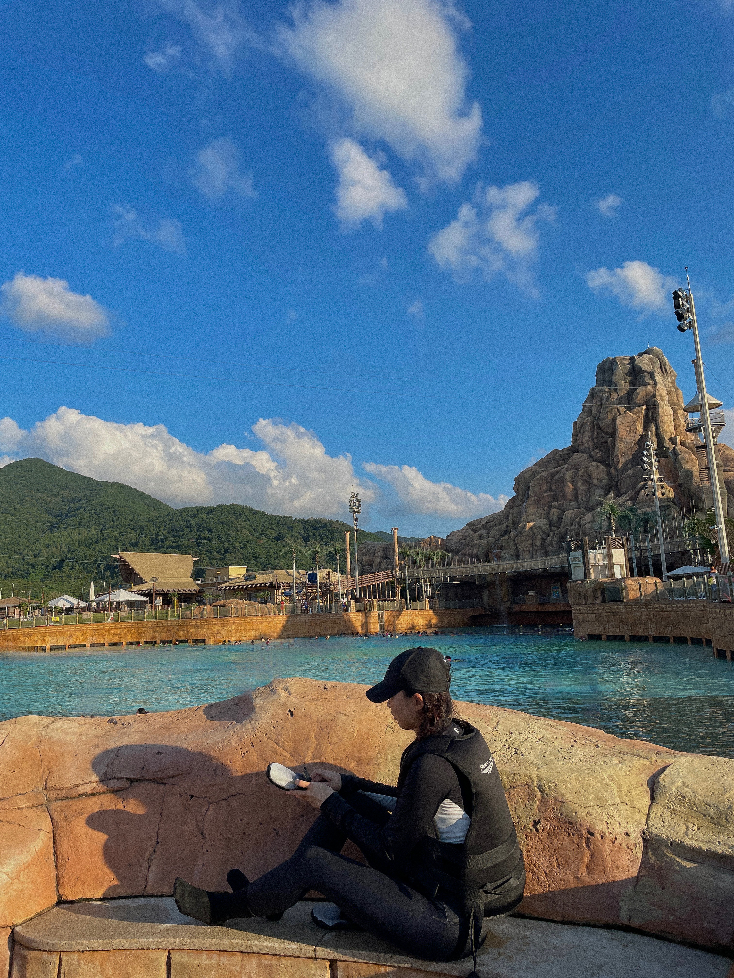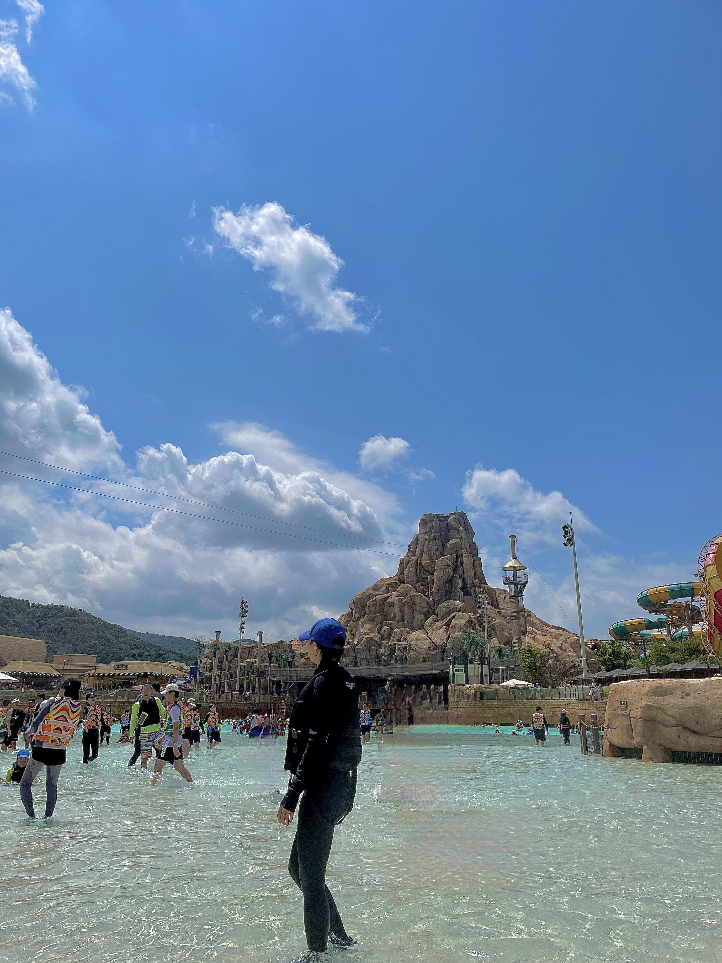 대기중에 햇빛..파도풀에서 피부 지켜야해요