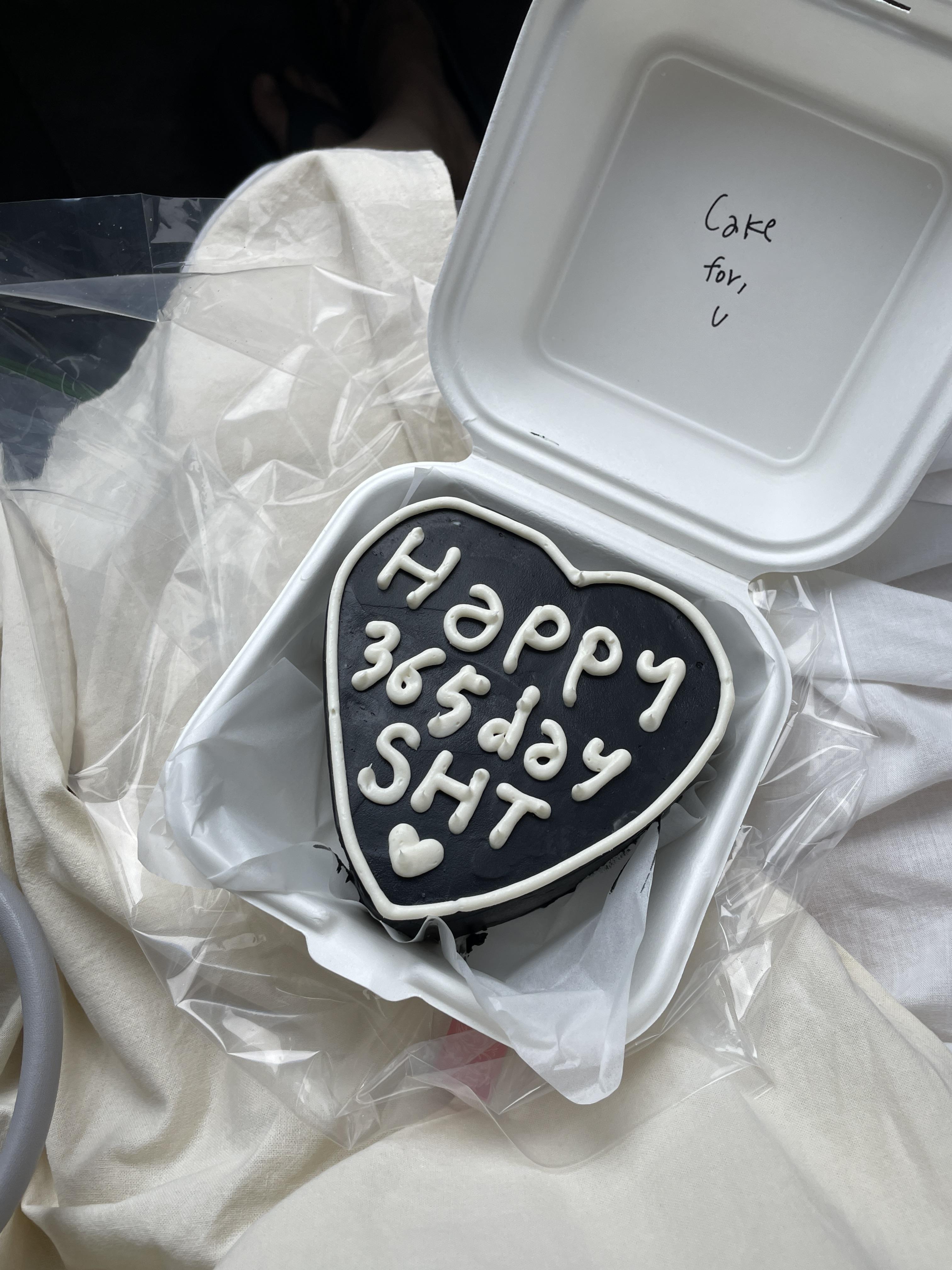 케이크 받자마자 너무 예쁘다며 난리 쳤어요.
